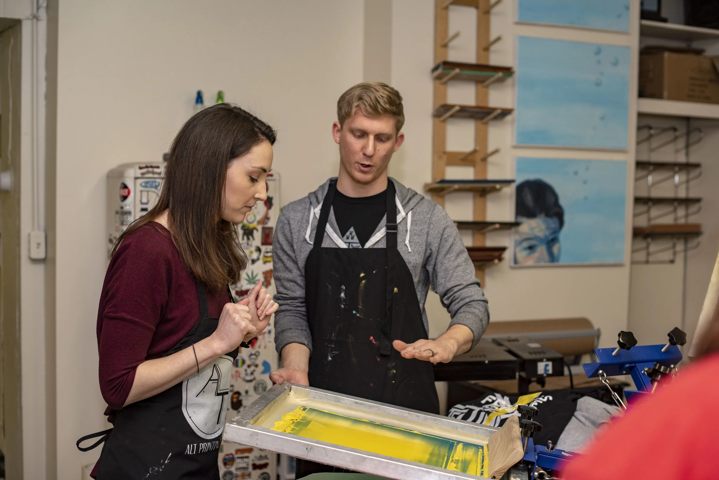 Introduction and Instruction: Once everyone is settled, we'll kick off the workshop with a warm welcome and introduce you to the exciting world of screen printing. Our instructor will provide step-by-step instructions on the screen-printing process, making it easy for all skill levels to participate.